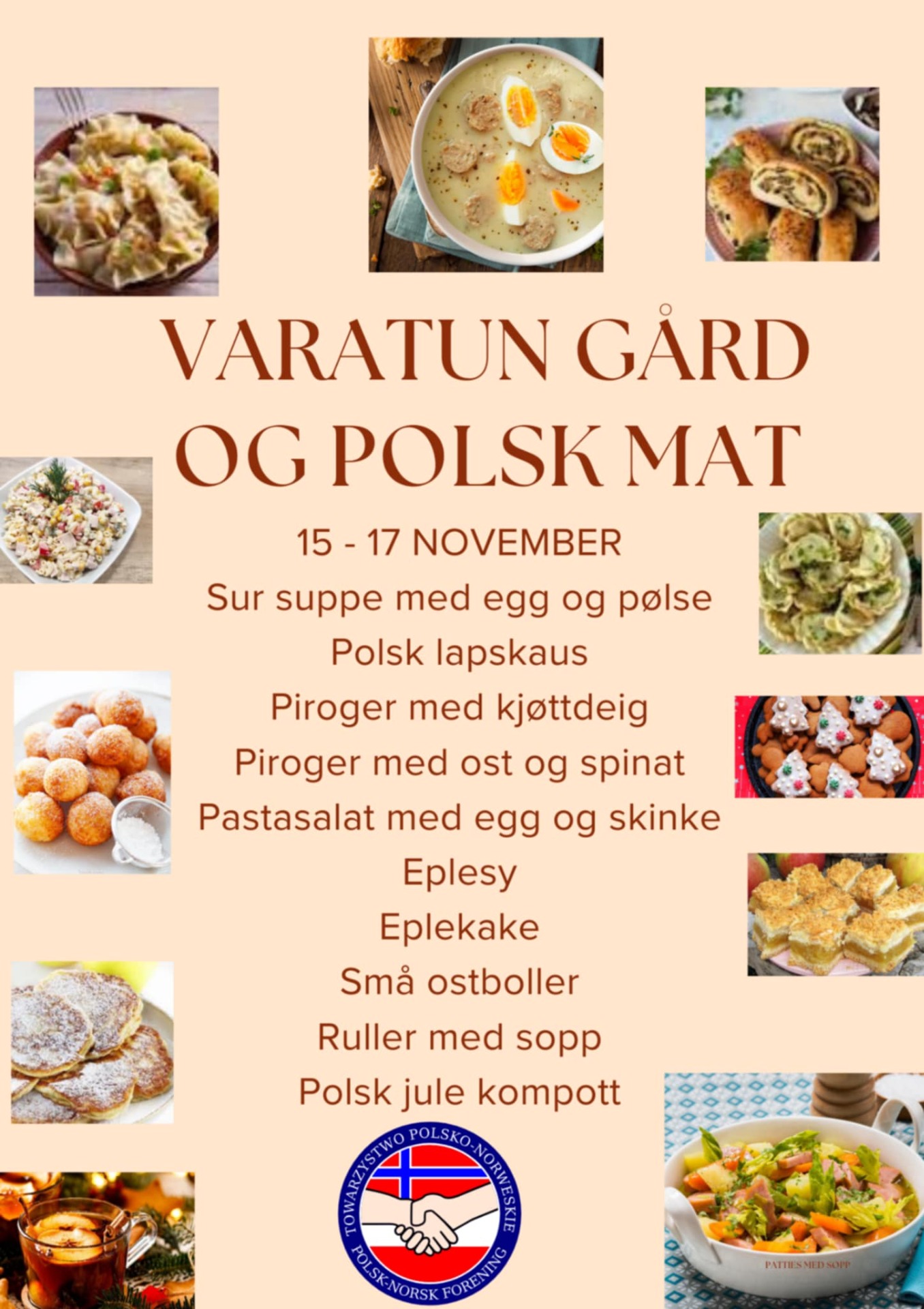 Serdecznie zapraszamy na JULEMARKED w Varatun Gård i wyjątkowe, polskie kulinarne dni! Od 15 do 17 listopada 2024 będziecie mieli okazję spróbować tradycyjnych polskich przysmaków.